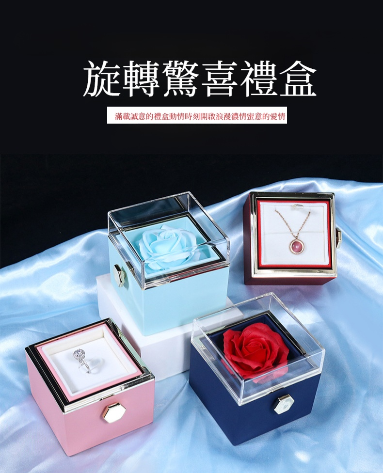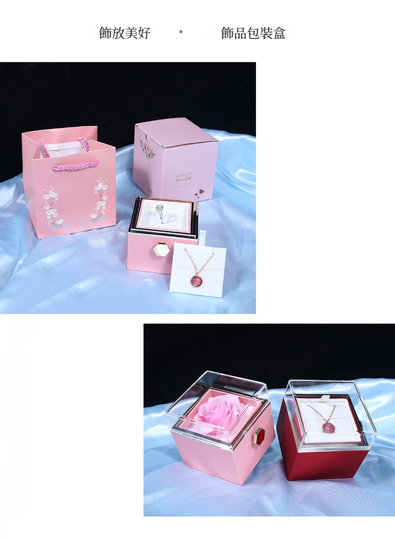 旋轉情人節香皂花禮盒玫瑰花首飾盒戒指項鍊珠寶首飾品包裝盒